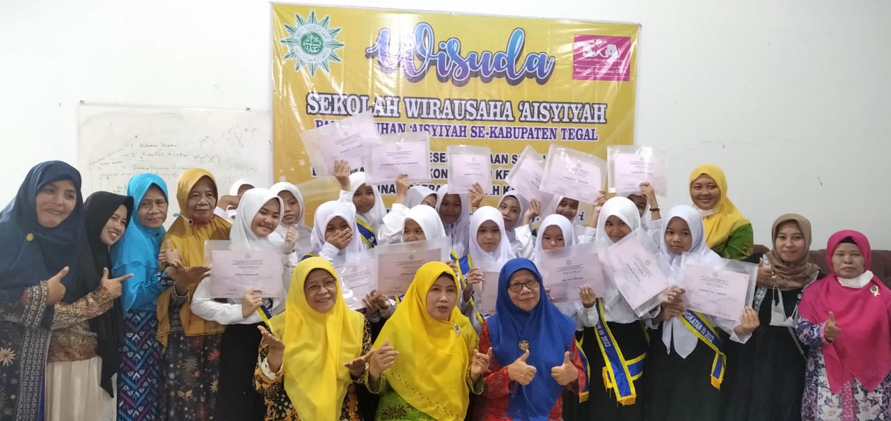 Dalam rangka mencetak insan yang kreatif, produktif, inovatif dan mandiri yang dapat mencerahkan, Pimpinan Daerah ‘Aisyiyah (PDA) Kabupaten Tegal selenggarakan program Sekolah Wirausaha ‘Aisyiyah (SWA). Program ini telah terlaksana hingga 3 angkatan dan telah diselenggarakan wisuda pada Ahad, (9/9) bertempat di Aula Gedung Dakwah ‘Aisyiyah.