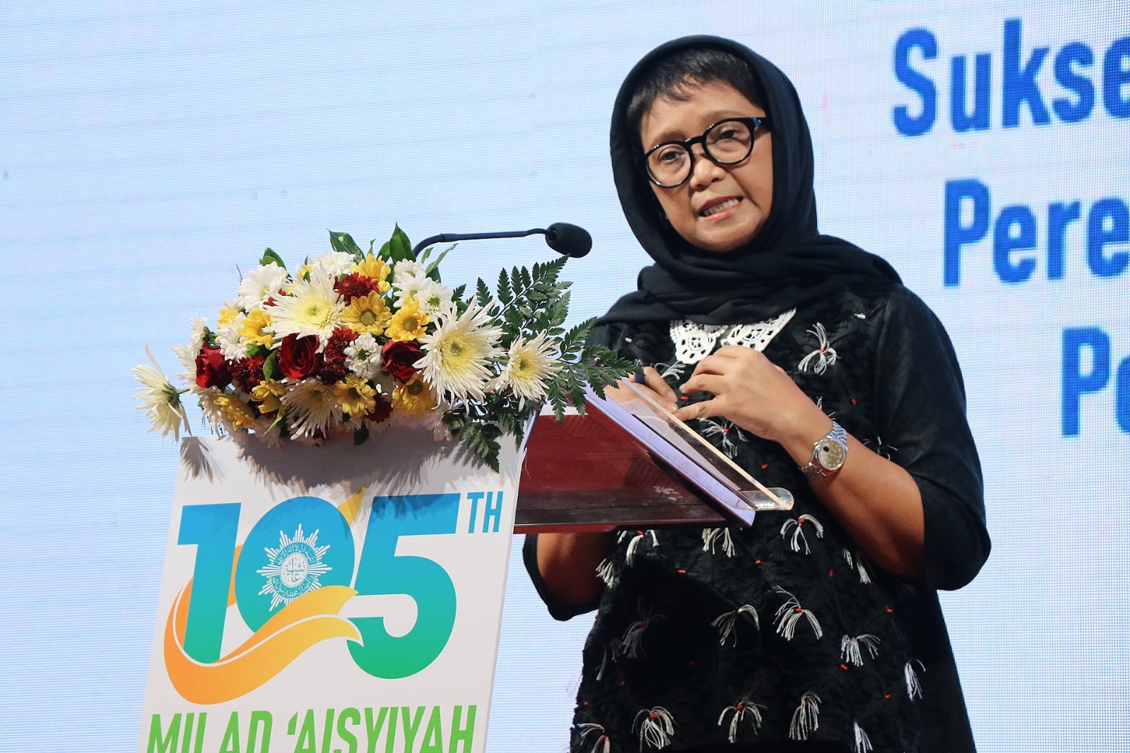 Dalam usianya yang ke-105th Menteri Retno menyebut peran ‘Aisyiyah sangat berarti dalam memajukan peran perempuan, termasuk juga meningkatkan harkat dan martabat perempuan Indonesia. Tidak hanya bagi bangsa Indonesia, Menteri Retno menyebut ‘Aisyiyah bersama Muhammadiyah juga turut berkontribusi bagi penanganan isu-isu global bekerjasama dengan kementerian luar negeri. “Apresiasi atas komitmen ‘Aisyiyah untuk terus memajukan peran perempuan, dalam sejarah perjalanan politik luar negeri kita banyak sekali kerjasama yang terjalin baik dengan ‘Aisyiyah maupun Muhammadiyah dalam berbagai isu dan ini tentunya harapan saya kerjasama ini dapat terus kita perkuat.”