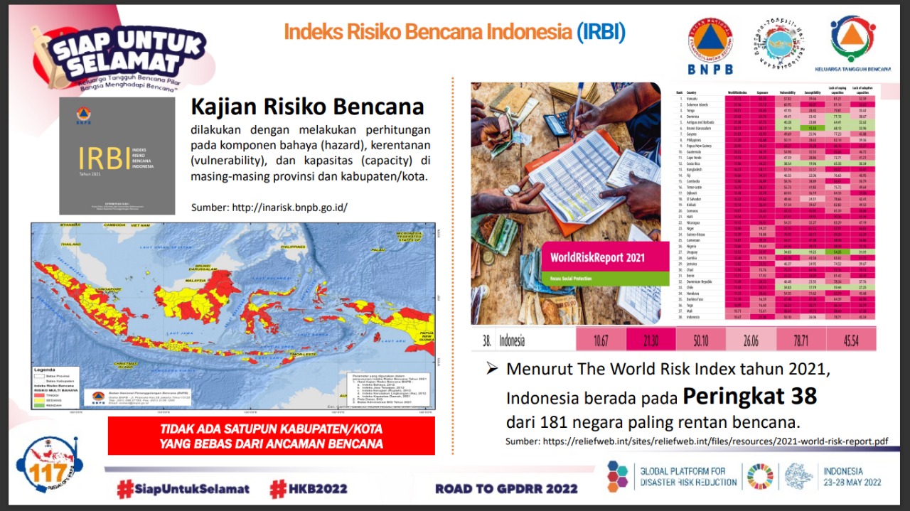 Hening memaparkan bahwa menurut Hasil Kajian Risiko Bencana yang dihimpun dari seluruh provinsi dan daerah di Indonesia, menunjukkan bahwa tidak ada satupun kabupaten kota yang bebas dari risiko bencana. Sedangkan menurut The World Risk Index tahun 2021, Indonesia berada pada Peringkat 38 dari 181 negara paling rentan bencana. Dilansir dari Pusdatinkomben BNPB, dalam kurun waktu 20 tahun bencana alam di Indonesia (2001-2020), terdapat 33.412 total kejadian bencana, dengan total 191.529 korban jiwa.
