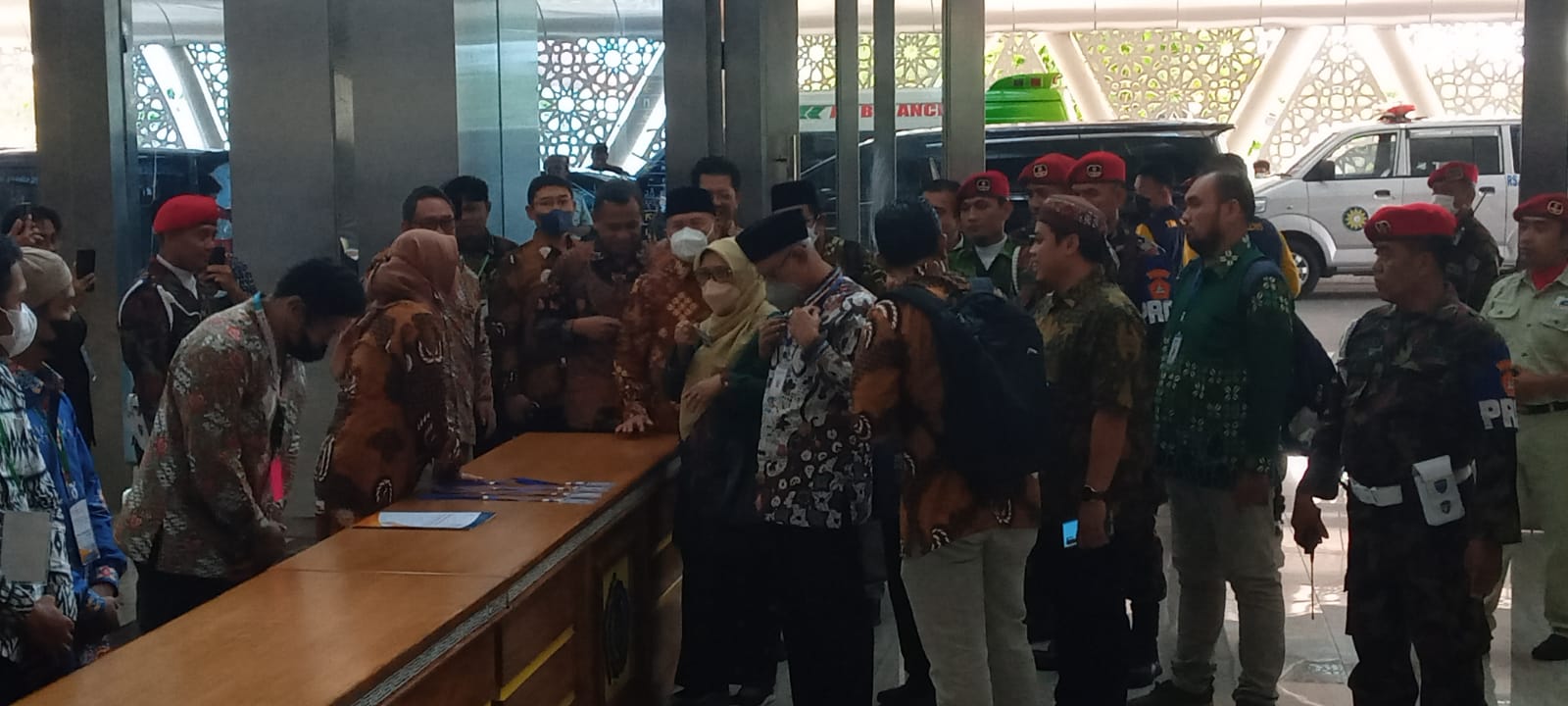 Ketua Umum PP Muhammadiyah, Haedar Nashir dan Ketua Umum PP ‘Aisyiyah, Siti Noordjannah Djohantini melakukan peninjauan dan mengikuti simulasi pemilihan Muktamar 48 Muhammadiyah ‘Aisyiyah di Gedung Edutorium K.H. Ahmad Dahlan, UMS pada Sabtu (29/10/22).