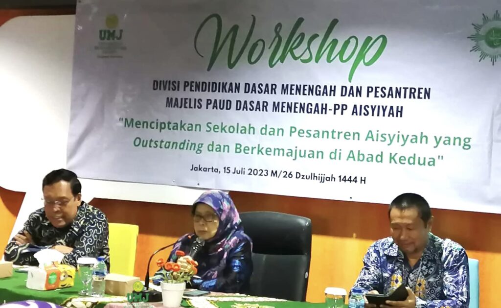 JAKARTA – Divisi Pendidikan Dasar Menengah dan Pesantren, Majelis PAUD Dasar Menengah PP ‘Aisyiyah gelar Workshop Menciptakan Sekolah dan Pesantren ‘Aisyiyah yang Outstanding dan Berkemajuan di Abad Kedua pada Sabtu (15/7/23). Acara yang bekerja sama dengan Universitas Muhammadiyah Jakarta ini dilaksanakan di Gedung Business Center UMJ.