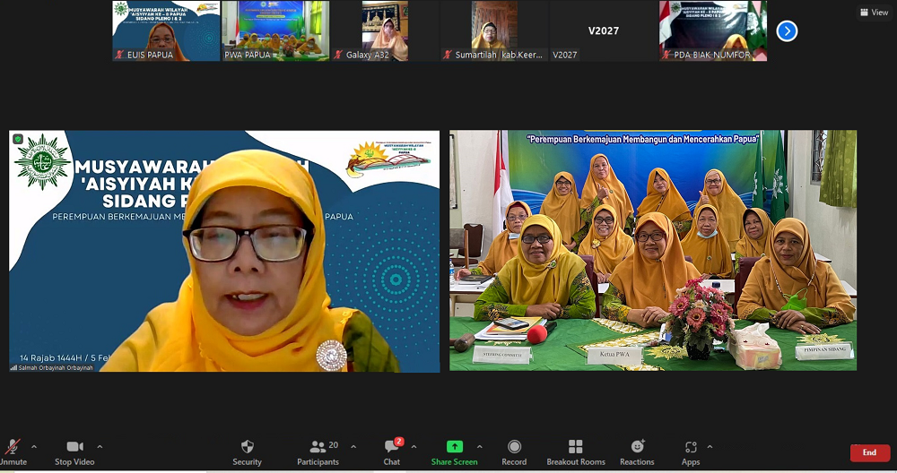 PAPUA – “’Aisyiyah harus terus bergerak secara progesif, harus berlari kencang tiga kali lebih cepat sehingga harus hadir sebagai gerakan perempuan muslim berkemajuan yang mampu dan berkontribusi menyelesaikan permasalahan umat dan bangsa.” Hal tersebut disampaikan oleh Ketua Umum Pimpinan Pusat ‘Aisyiyah, Salmah Orbayinah dalam pembukaan Musyawarah Wilayah (Musywil) ‘Aisyiyah ke-8 Papua yang dilaksanakan secara hybrid pada Ahad (05/02/23).