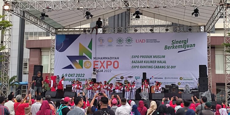 Parade Angklung dari TK ABA ( Taman Kanak-kanak ‘Aisyiyah Bustanul Athfal ) se-DIY, berhasil membuka dengan meriah Muhammadiyah Jogja Expo #2 pada Kamis (6/10/22). Muhammadiyah Jogja Expo #2 merupakan acara expo UMKM dari berbagai macam usaha dan juga perwakilan Pimpinan Cabang Muhammadiyah dan ‘Aisyiyah se Daerah Istimewa Yogyakarta (DIY).