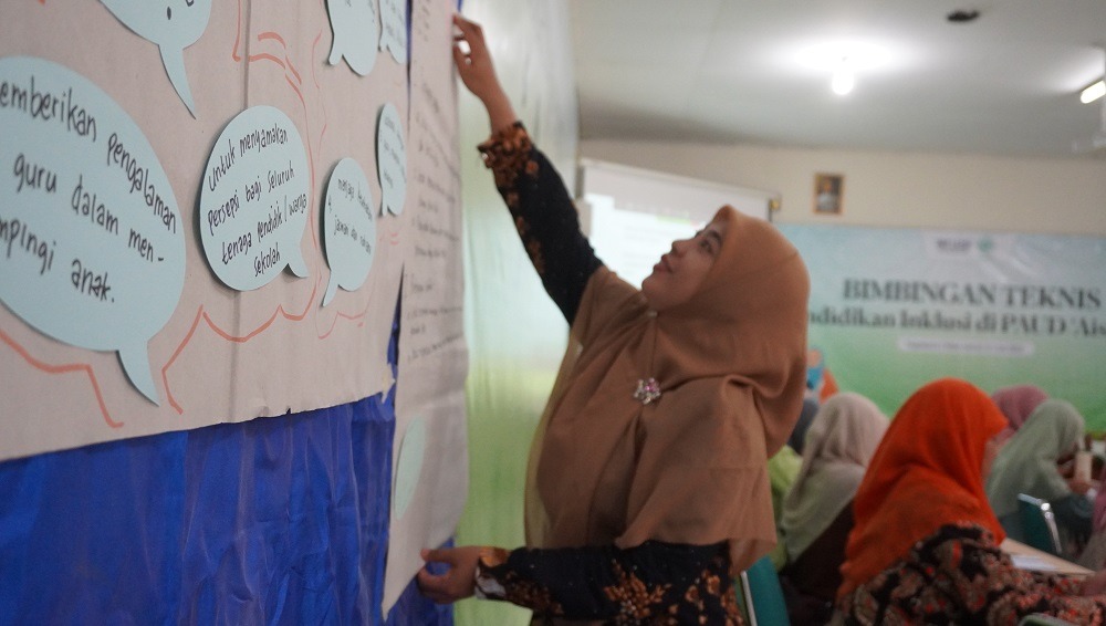 Koordinator Program Inklusi ‘Aisyiyah yang juga merupakan Sekretaris Umum Pimpinan Pusat ‘Aisyiyah, Tri Hastuti Nur Rochimah menyebutkan bahwa kegiatan BIMTEK ini dilandaskan dengan semangat dan modeling Pendidikan inklusif yang dimulai dengan PAUD ‘Aisyiyah. ‘Aisyiyah disebut Tri adalah pelopor dalam hal pendidikan dan 25% pendidikan PAUD adalah dari ‘Aisyiyah. “Maka kita harus menguatkan pendidikan inklusif ini di PAUD-PAUD ‘Aisyiyah dan ‘Aisyiyah lah yang menjadi di garda depan. Oleh karena itu, kepeloporan harus di bangun terus oleh kader ‘Aisyiyah sehingga menjadi mainstream di semua PAUD ‘Aisyiyah,” tegas Tri.