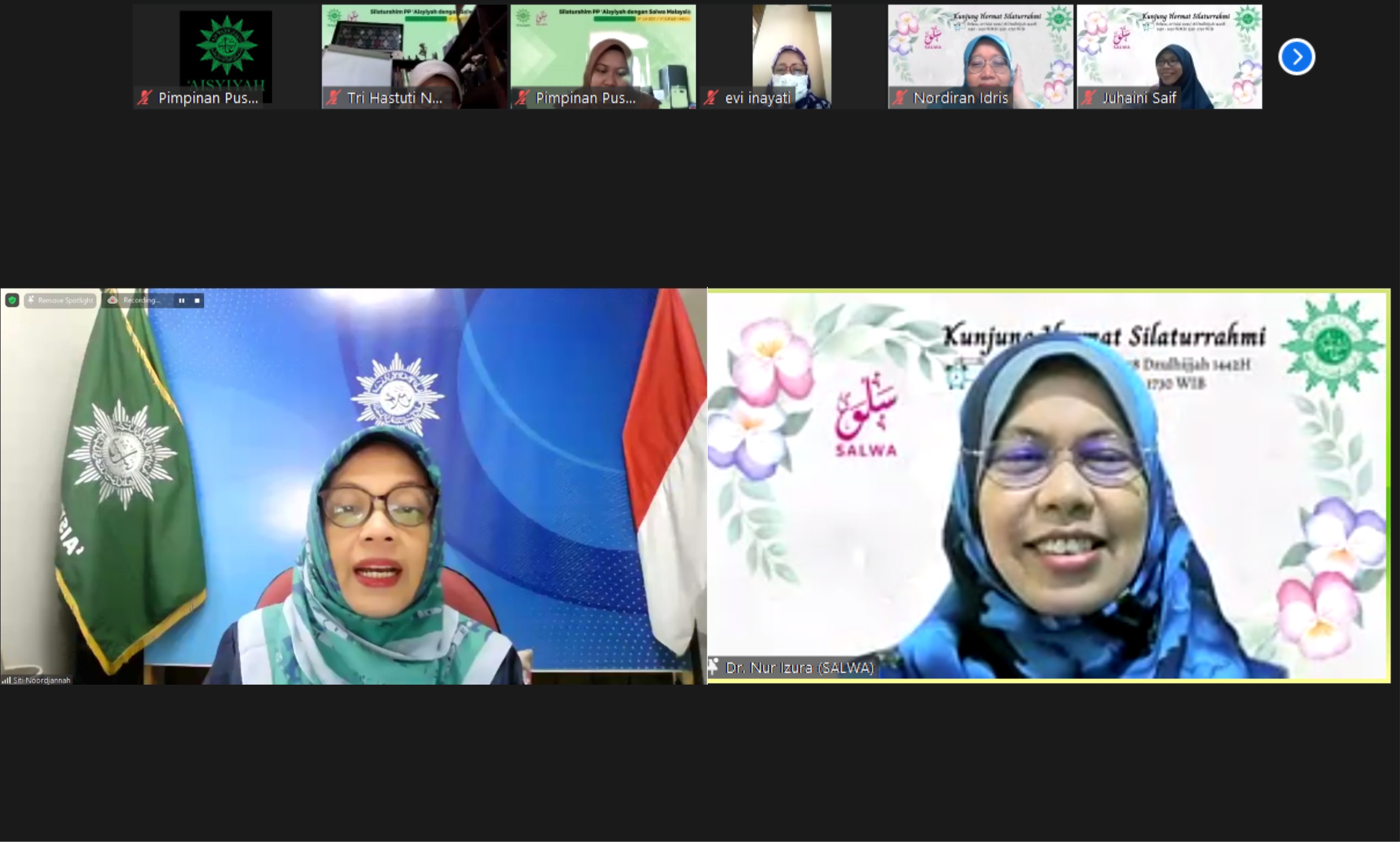 Agenda dari kegiatan yang dilaksanakan secara daring ini adalah untuk bersilaturahim, berkenalan, serta membuka kegiatan kerjasama ke depannya. Noordjannah menyambut dengan tangan terbuka kerjasama yang akan dijalin serta berharap selepas pandemic COVID-19 dapat mengunjungi SALWA. Ia menyebutkan bahwa Muhammadiyah sudah siap untuk melaksanakan kegiatan operasional Universitas Muhammadiyah Malaysia yang ada di Perlis. Sehingga Universitas Muhammadiyah Malaysia ini kelak dapat dijadikan tempat yang strategis berbincang serta menjalin kerjasama dengan SALWA dan organisasi lain yang ada di Malaysia. (Suri)