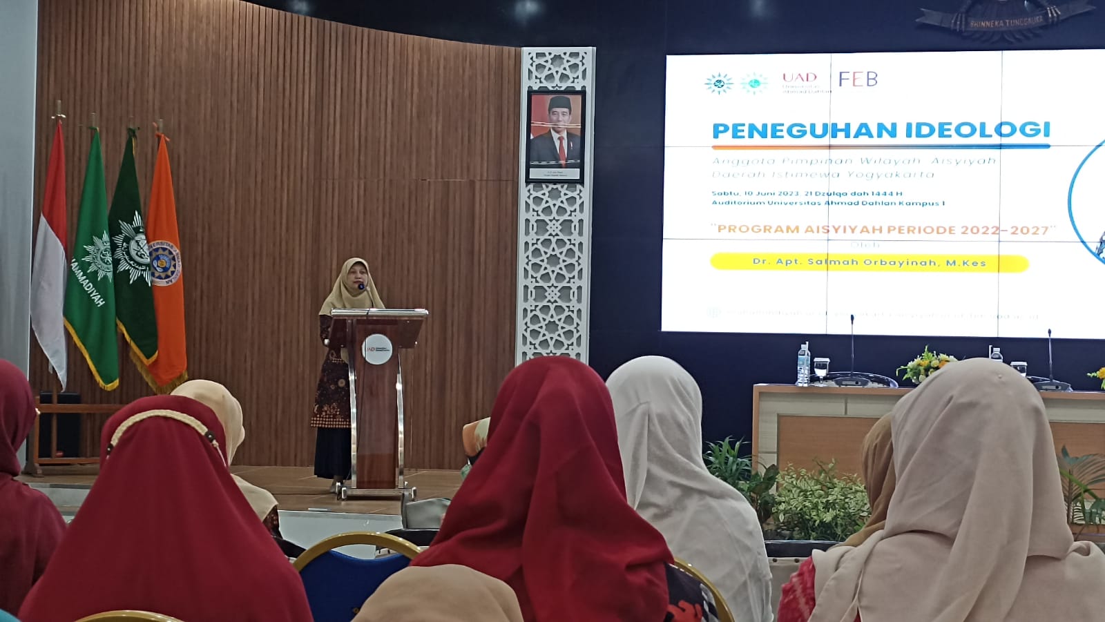 YOGYAKARTA – Pimpinan Wilayah Aisyiyah (PWA) DI Yogyakarta menyelenggarakan kegiatan Peneguhan Ideologi bagi seluruh pimpinan dan anggota Majelis dan Lembaga di Universitas Ahmad Dahlan Yogyakarta (UAD), Sabtu (10/6). Kegiatan ini digelar pasca serah terima jabatan dan penerbitan SK Pimpinan Majelis dan Lembaga PWA DIY 2022-2027.